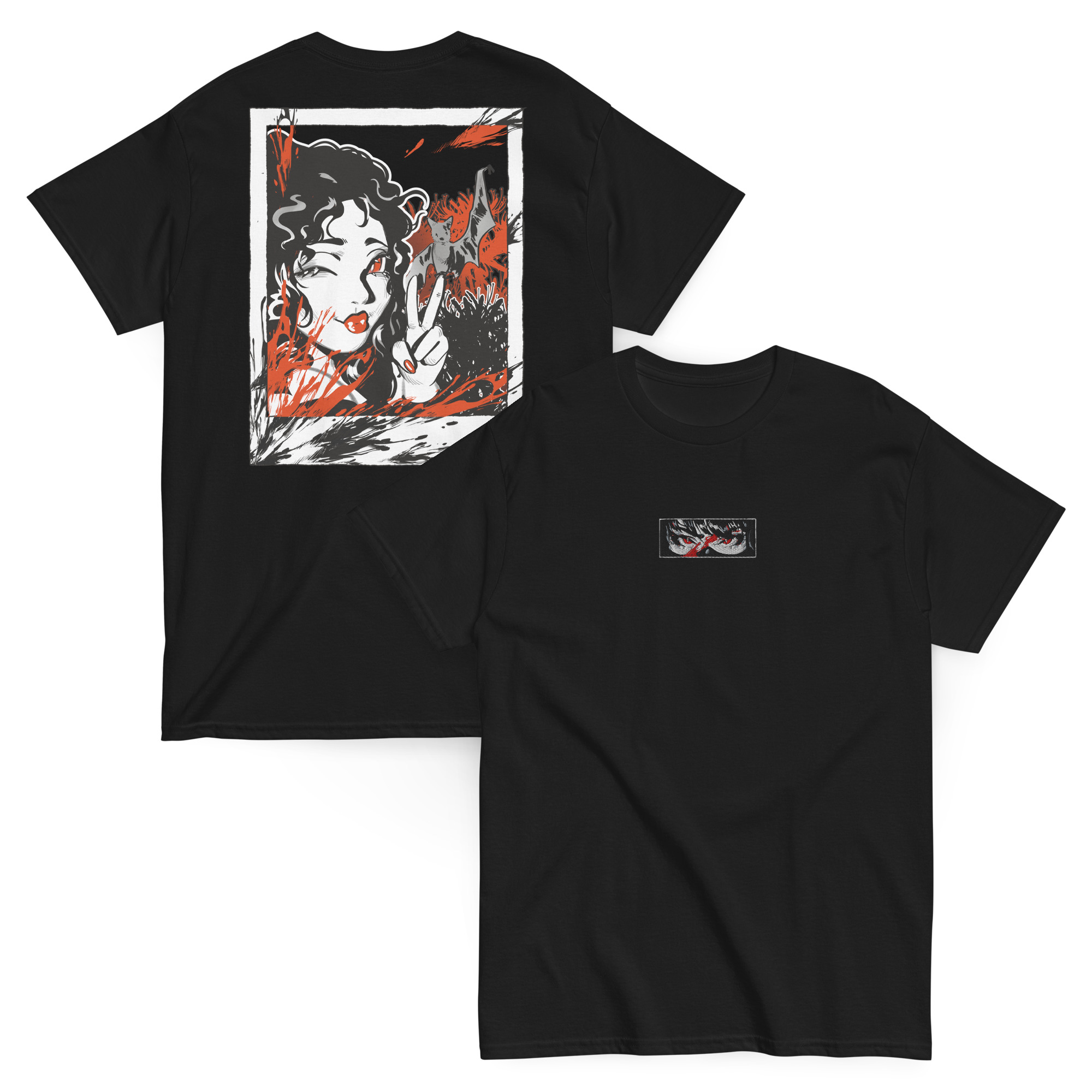 Plongez au cœur du mythe avec ce T-shirt graphique issu de notre série dédiée aux vampires, illustrée par l’artiste Ailéa.