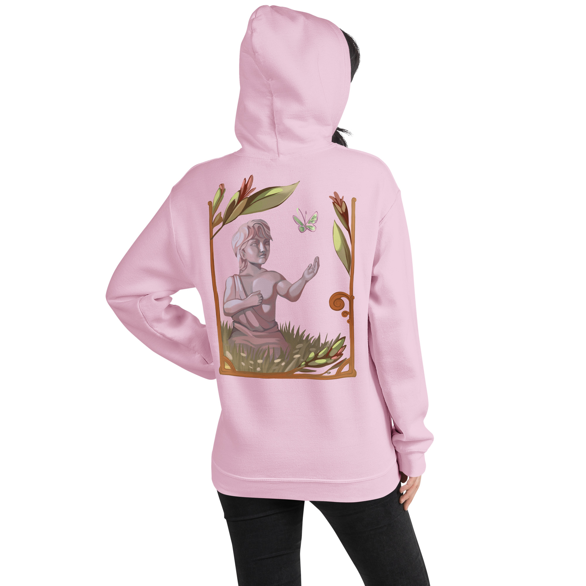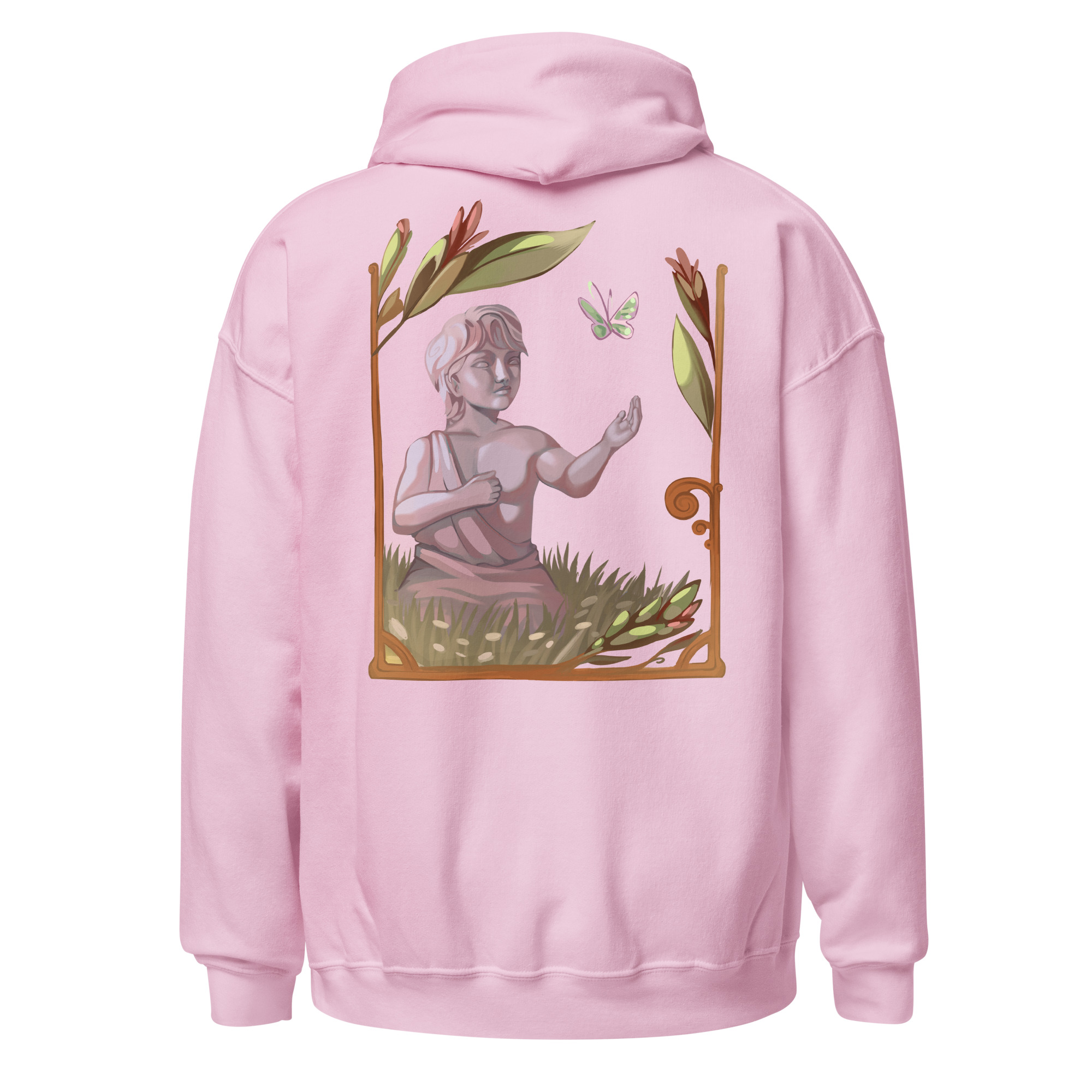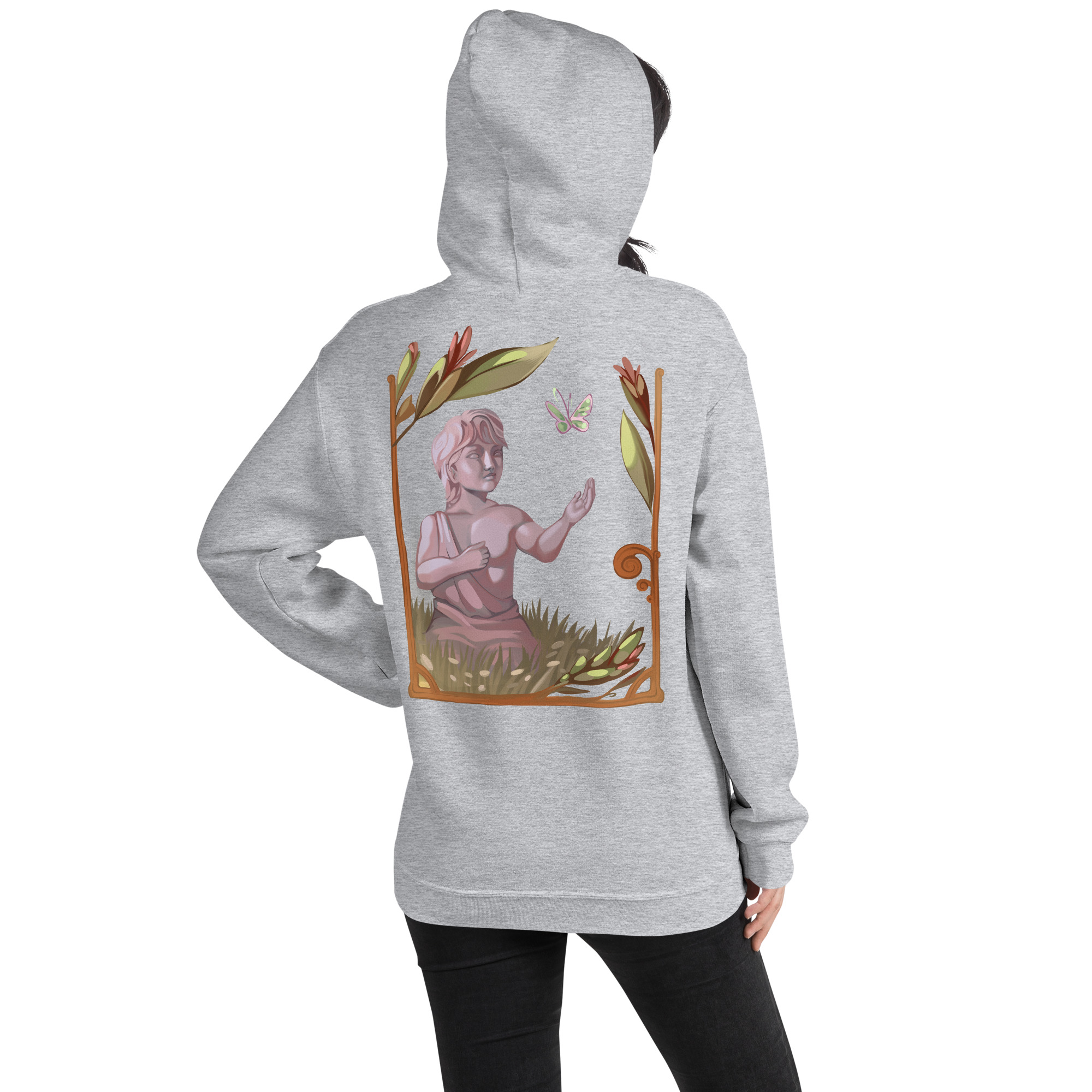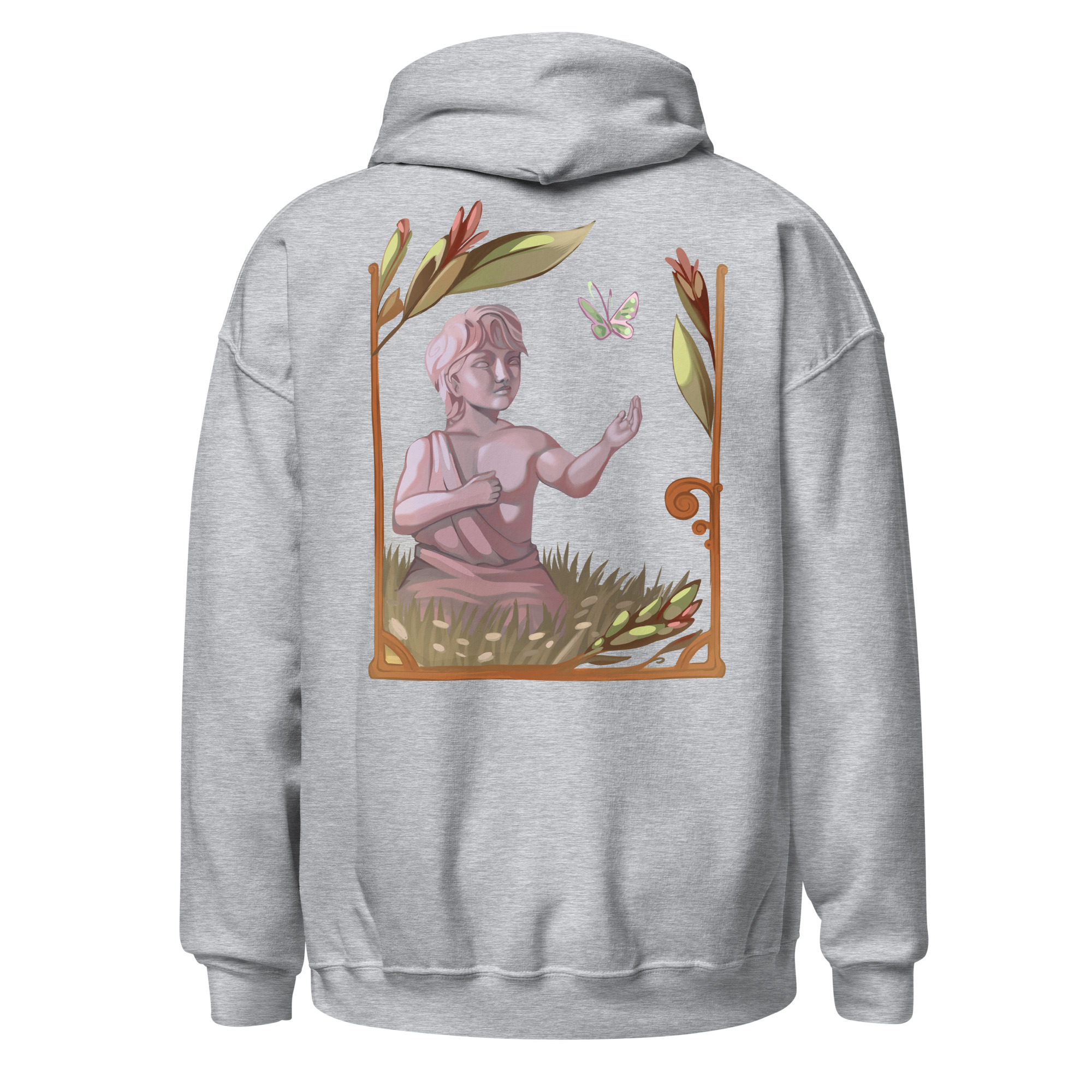 bras tendu vers un papillon qui flotte comme une pensée légère.